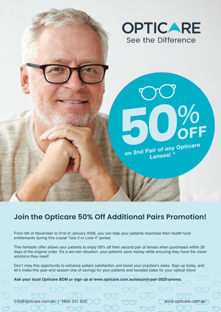 Opticare is proud to announce that their Optilux Premium Progressive Lens Series is now officially certified Australian Made, reinforcing their long-standing commitment to local quality, innovation, and support for independent practices. Designed, developed, and manufactured in their Sydney lab, Optilux lenses are created specifically for the way Australians live and see—across progressive, specialty, office, anti-fatigue, young adult, and behavioural designs. With proven performance, faster turnaround times, and dedicated local support, Optilux strengthens both practice growth and Australia’s optical supply chain.