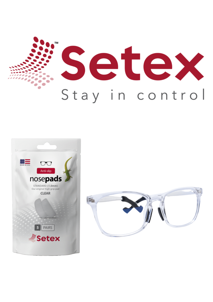 Introducing a new range of anti-slip nose pads and temple grips that feature a patented gecko-inspired non-slip texture that provides a comfortable and secure grip even on sweaty and oily skin. Available in black or clear, in various sizes.