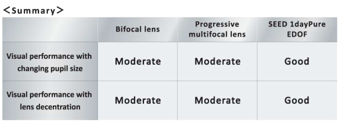 The Brien Holden Vision Institute and SEED have developed an algorithm that unlocks the full potential of optical characteristics (lens performance) and visual properties (visual acuity for users). They have applied this to lens design to develop a unique EDOF lens that minimises variability in visual performance at varying distances, the major limitation of conventional bifocal contact lenses.
